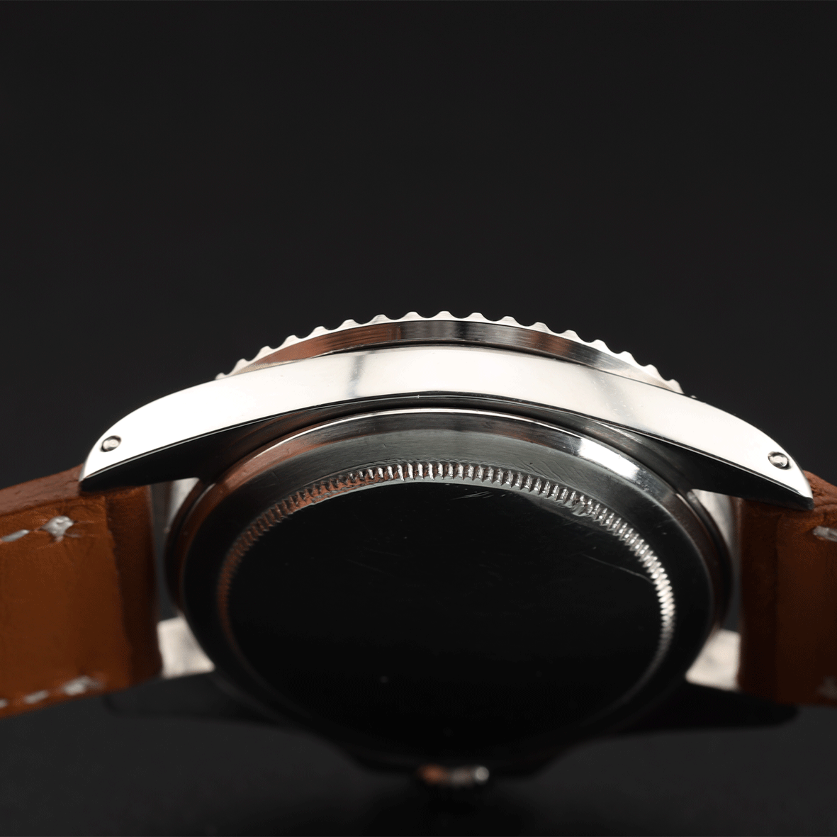 Das Zifferblatt präsentiert sich in einem perfekten Zustand mit einer bezaubernden Vanille-Patina, die über die Jahre natürlich entstanden ist und der Uhr einen unverwechselbaren Charme verleiht. Das Gehäuse wurde in der Vergangenheit poliert, ist jedoch noch immer in sehr gutem Zustand und zeigt sich robust und zeitlos elegant. Die passende Long5-Lünettene Einlage vervollständigt das harmonische Gesamtbild.